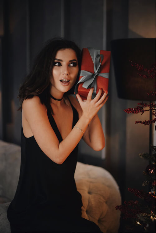 Вибираємо найкрасивішу сукню, вмикаємо мерехтливі вогники на ялинці, наливаємо ігристе в келих і щиро посміхаємося, — от і весь рецепт вдалих кадрів!
